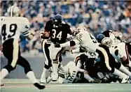 Walter Payton (34) pictured breaking the NFL's career rushing record on October 7, 1984..