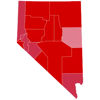Nevada would remain strongly Republican in 1988, but thereafter, it would return to being a more competitive state, as Clark County returned to the Democratic fold in 1992 (and has, as of 2024, never voted Republican again). Bill Clinton won it twice, but by narrow margins; but George W. Bush also won it only by narrow margins in his two elections. No nominee of either party has received as high a vote share in the state as Reagan, as of 2024. This was the only time that a Republican presidential candidate won two terms by carrying all counties in Nevada in both instances.