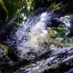 An area of disturbed weather developed a circulation on August 12 and was upgraded into Tropical Depression Twelve nearly 700 mi (1,100 km) south of the Baja California Peninsula. It drifted slowly to the northwest until it dissipated near 22 °N 110 °W on August 14. Peak maximum sustained winds were estimated at 35 mph (55 km/h).[2] Tropical Depression Seventeen formed on September 8, 30 km (20 mi) east of Socorro Island and dissipated on September 9 over cold water without becoming a tropical storm.[2]