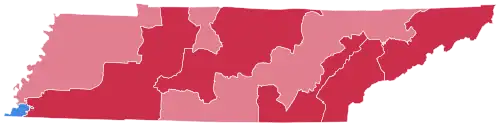 Tennessee weighed in for this election as eight points more Republican than the national average. Tennessee was the only state that Bush won a higher percentage of the vote and larger margin of victory than Ronald Reagan in 1984, albeit by a difference of less than a tenth of a percent. As of the 2024 presidential election, this was the last time the Republican candidate carried Davidson County (home of Nashville) and Shelby County (home of Memphis), both of which have become staunch, and the only, Democratic strongholds into the 21st century.[1] Hardeman County, Tennessee would not vote for a Republican again until the 2016 United States presidential election.