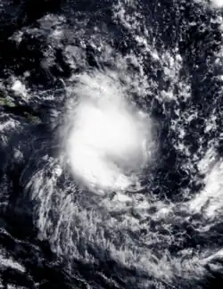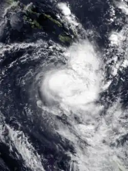 A shallow and ill-defined tropical depression developed on January 1, about 400 km (250 mi) to the east of the Samoan Islands.[1] Over the next few days the depression moved south-westwards before it weakened slightly during January 3, with atmospheric convection surrounding the system decreasing.[1] The system subsequently recurved and started to move towards the southeast towards the island nation of Niue.[2] The FMS subsequently named the system Fili during January 5, after it had become a Category 2 tropical cyclone with peak wind speeds of 95 km/h (60 mph).[1][13] After being named the system continued to move south-eastwards, before it was last noted, well to the southeast of the Cook Islands during January 8.[2][13] There was no damage to any islands associated with Fili, however, the FMS reported that strong winds had appeared to cause some minor damage on Niue.[2]