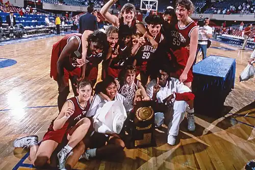 After losing three starters from the prior year's team, including All-American Sonia Henning, some observers, including assistant coach Amy Tucker, were not expecting a stellar season. Their point guard, Molly Goodenbour, had not seen a lot of playing time in prior years playing behind Henning and Jennifer Azzi, but she would go on to hit 18 three-pointers in the tournament, at the time an NCAA record, and win the MVP award for the tournament. Teammates Rachel Hemmer and Val Whiting also earned spots on the All-Tournament team as the team won a 78–62 victory over Western Kentucky to claim their second national championship in three years.[5][7]