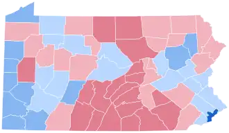 In Pennsylvania, Clinton received 49.2% of the vote, the same percentage as the national vote when rounded to the nearest tenth. Pennsylvania was also the tipping-point state in this election. As of the 2024 presidential election, this is the last election in which the following counties voted for a Democratic presidential candidate: Warren, Clinton, Westmoreland, Schuylkill, Armstrong, Columbia, Forest, and Indiana.[3] It was also the last election until 2008 in which Pennsylvania was the most Republican of the three Rust Belt swing states (including Wisconsin and Michigan).