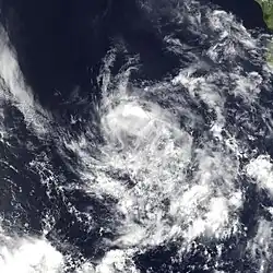 A tropical wave moved off the coast of western Africa into the Atlantic Ocean on August 29. It continued to move westward through the tropical waters of the Atlantic into the Caribbean. It still remained a tropical wave as it moved over Central America and began to acquire more convection and organization, from September 10 through September 11. Visible satellite imagery showed low level circulation and more organized deep convection as it became a tropical depression on September 17, while located about 475 miles (764 km) south-southeast of the southern tip of the Baja California Peninsula.[30]