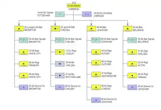 The AA Divisions were unlike field formations: they were established to organise training and later exercise operational command in the static conditions of home defence, but relied entirely on the Home Forces commands for logistic support, supplies, and heavy repairs.[8]