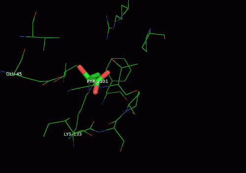 Active site showing interaction of pyruvate with zwitterionic pair Glu-45/Lys-133