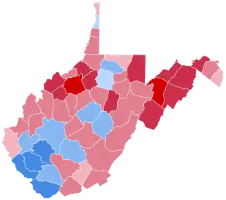 In this election, West Virginia voted 6.84% more Republican than the nation at-large.[2]