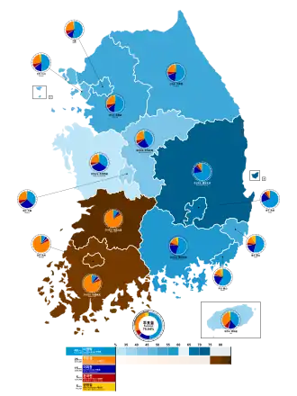 | South Jeolla | 15,224 | 46.1 | 11,958 | 36.2 | 5,819 | 17.6 | – | – | 33,001 | |
