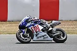 Jorge Lorenzo, riding his Yamaha at the MotoGP race, which he went on to win.