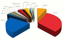 The four centre-left Opposition parties, contesting the election united as the Kukuriku coalition, received their best result ever, with SDP winning 61 seats meaning that for the first time since Independence they will be the largest single party in Parliament, Croatian People's Party – Liberal Democrats winning 14, IDS 3 and Croatian Party of Pensioners also 3. Despite the record number of seats won, the coalition received 958,312 votes, or 40.0%, compared to 2007 when they contested the election separately and received 1,083,488, or 43.6%. The newly formed Labour Party, led by former HNS party member Dragutin Lesar, was a major surprise of the election. It won 6 seats, an unusual feat from a party outcast in a country with a stable political system where independent newcomers rarely win a significant proportion of the vote. Another surprise was the independent candidate Ivan Grubišić, a former Roman Catholic priest who ran on a campaign of restoring ethics and integrity to politics. He won 2 seats in his tenth electoral district, largely from Split, the second largest city in the country. Croatian Democratic Alliance of Slavonia and Baranja (HDSSB), a regional rightist party from Slavonia, contested the election in districts IV and V and achieved an unexpected 6 seats, despite most polls before the election giving them a maximum of 5 seats. They ran on a campaign of decentralization and regionalism and a very vocal opposition to HDZ.
