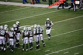 On November 22, against the New England Patriots on Thanksgiving, Mark Sanchez fumbled after running into lineman Brandon Moore, and Steve Gregory ran back a 32-yard fumble return for a touchdown. The game is known now by Jets fans as the infamous "butt fumble" play and was considered the low point of the season.[3] After that it was all downhill as the Jets suffered their first losing season since 2007. The Jets' offense scored only 281 points, ranking them 30th in the league,[4] while the defense was ranked 8th best in the league.[5]