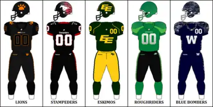 - ^ "Bold new CFL Signature Uniforms coming soon". CFL.ca. Archived from the original on September 23, 2015. Retrieved August 6, 2015.