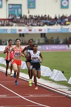 4. ^ Archana Adhav had originally won the gold medal but was later disqualified for jostling in the final stages of the race