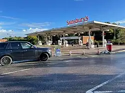 Empty Sainsbury's filling station in Ashford, Kent, October 2021