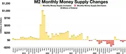 M2 monthly money supply changes. Money supply dropped by $-224.5 billion in March 2023. The largest drop on record since 1959.