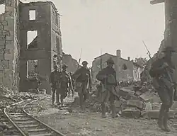 During World War I, the division was involved in the Meuse-Argonne, Champagne-Marne, Aisne-Marne including the Battle of Fismes and Fismette, Oise-Aisne, and Ypres-Lys (FA) operations. During the war, it took a total of 14,139 casualties (2,165 killed and 11,974 wounded). Two individuals received the Medal of Honor: Sergeant James I. Mestrovitch, Company C, 111th Infantry; and Major Joseph H. Thompson, Headquarters, 110th Infantry.[17] Edwin Martin wrote about the history of the division during World War I can be found in his book The Twenty-Eighth Division: Pennsylvania's Guard in the World War.[18]