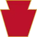 It was originally nicknamed the "Keystone Division,"[4] as it was formed from units of the Pennsylvania Army National Guard; Pennsylvania being known as the "Keystone State." During World War II, it was given the nickname the "Bloody Bucket" division by German forces due to the shape and color of its red keystone insignia.[5] Today the 28th Infantry Division goes by the name given to it by General Pershing during World War I: "Iron Division." The 28th is the first Army National Guard division to field the Stryker infantry fighting vehicle, as part of the Army's reorganization in the first decade of the 2000s.