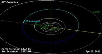 1. ^ a b c d e f "JPL Small-Body Database Browser: 327 Columbia" (2016-11-07 last obs.). Jet Propulsion Laboratory. Retrieved 6 February 2017.