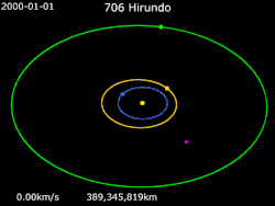 5. ^ a b "Asteroid 706 Hirundo – Proper Elements". AstDyS-2, Asteroids – Dynamic Site. Retrieved 16 June 2020.