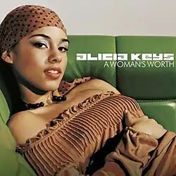 "A Woman's Worth" is a song recorded by American singer-songwriter Alicia Keys for her debut studio album Songs in A Minor (2001). It was written by Keys and Erika Rose and produced by Keys. The song was released as the second single from Songs in A Minor on October 2, 2001, by J Records, following the worldwide success of her debut single "Fallin'".