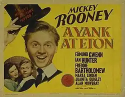 A Yank at Eton is an American comedy-drama film directed by Norman Taurog for Metro-Goldwyn-Mayer and starring Mickey Rooney, Ian Hunter, and Peter Lawford.[2] Released in 1942, it is a thematic sequel to MGM's British-made film A Yank at Oxford (1938). Edmund Gwenn, who played a school official in the earlier film, has a similar role in this film. A Yank at Eton was filmed entirely in the United States.