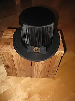 The professorial Talar can be described as a long black gown with wide sleeves, often with lapels in faculty colour, while deans wear a Talar completely in faculty colour. Rectors typically have a distinguished, more elaborate Talar, e.g., made of velvet, coloured in red, or with gold embroidery.[14][15] At some universities, the rector additionally wears a chain of office and, at some occasions, carries a scepter.[16][17] The cap that accompanies the Talar is called Barett. As is the case with the Talar, which type of cap is used varies by university as well. Historically, caps made of soft materials rather than the square academic cap are common. The colour of the Barett matches the Talar.[15]