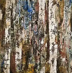 His work combines abstract tradition with a sensibility to the present moment that is the result of an affinity for Eastern spiritual teachings. His paintings have lush surfaces built up over the course of 3 to 5 years or more, and a luminous tension that evokes a deep emotional response in the viewer.[3]
