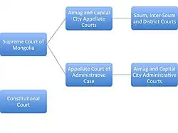 30. ^ Erdenebat & Erdenebaatar v. Government of Mongolia (Capital City Admin. Ct 2005); Enkhbold v. General Election Committee (Capital City Admin. Ct 2004)