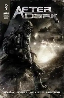 After Dark is a three-issue, dark science fiction limited series published by Radical Comics in a 56-page graphic novella format. The series concept and characters were created by film director/producer Antoine Fuqua (director of Training Day, Shooter, and Brooklyn's Finest) and actor Wesley Snipes (star of the Blade series, Money Train, and Demolition Man).[1][2][3] The series is written by Peter Milligan (best known for Marvel Comics's X-Statix series) and illustrated by Jeff Nentrup.[4]