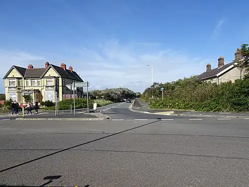 The station was built adjacent to a hotel called The Lakeside Hotel (in 2015 named 'The Sands' and trading as a local pub) situated at the coastal end of Shore Road. A terraced row of railway staff cottages immediately next to the station still stood in 2015, although all station structures, signal box and level crossing[7][8] have long gone.