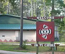 ![]() Sign on the Alabama-Coushatta Indian Reservation with phrase "On ti chuka" meaning "welcome" | |