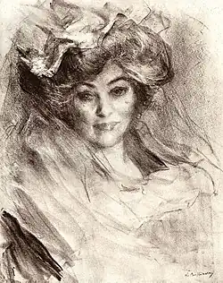 Lithograph of the artist's mother, Mrs. Harry Vane Milbank, c. 1900