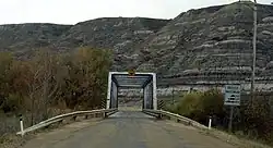 Highway 10X is a 5.6 km (3.5 mi) spur of Highway 10 that runs for 5.6 km (3.5 mi), connecting Wayne with Highway 10.[1] Following the amalgamation of the former City of Drumheller with the Municipal District of Badlands No. 7 on January 1, 1998,[3] the entire highway falls within the Town of Drumheller.[2] The road follows the course of the Rosebud River through a 100–150 m deep canyon. Nine bridges lead the road from one side of the river to the other, and most of the bridges are paralleled by railroad bridges of a presently abandoned track that used to cart coal from the Wayne mine. At its end, Highway 10X continues as Excelsior Avenue, which crosses the Rosebud River twice more, before splitting into Range Road 195A and Township Road 280A.[10]