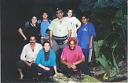 Romero Jr. (center) with a group of collaborators at Cumaca Cave in Trinidad