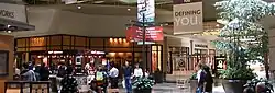 Facing a major vacancy with the 2000 closure of Lamonts, the mall was renovated and expanded in 2002.[26] The former Lamonts store was purchased and razed for the construction of a new Nordstrom that opened in 2003. The former Nordstrom was razed in its turn for the construction of The Village, an attached, open-air lifestyle area on the mall's northern side comprising new shops, restaurants and a Borders.[27] The addition was designed by Callison Architecture and was intended as the first phase in an "urbanized" mall.[28] A second expansion was simultaneously constructed on the mall's southwest side; named The Terraces, it incorporated an expanded food court and restaurants as well as a 16-screen Loews Cineplex Entertainment multiplex.[29][30] The theater, which opened on March 25, 2005,[31] replaced an older Grand Cinemas theater that Loews operated just outside the mall boundaries.[32][33] The expansion included two new parking garages, and the theater was constructed over subterranean parking. The 'mall' was dropped from the name at this time and became simply Alderwood, describing itself as a "lifestyle center".[27] Borders closed in 2011 following the company's bankruptcy.[34]