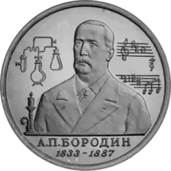 Alexander Porfiryevich Borodin[a] (12 November 1833 – 27 February 1887)[b] was a Russian Romantic composer and chemist of Georgian–Russian parentage.[3][4][5] He was one of the prominent 19th-century composers known as "The Five", a group dedicated to producing a "uniquely Russian" kind of classical music.[6][7][8] Borodin is known best for his symphonies, his two string quartets, the symphonic poem In the Steppes of Central Asia and his opera Prince Igor.