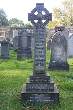 He is buried with other family members in a relatively commonplace grave in Dean Cemetery in Edinburgh on the central path within the north section of the original cemetery.