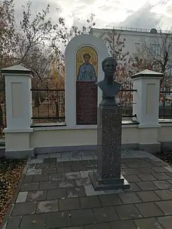 Icon and monument of Saint Alexander of Munich in Orenburg, Russia.