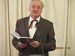 The academic title of professor of the Department of Ukrainian Literature was granted in 1995 by the Academic Council of the Ukrainian Pedagogical University. He joined the International Personnel Academy as a full member, or academician, in 2017.[4] He teaches pupils the craft of creative reading and acclimates them to handling the "Word" responsibly through his lectures.[3][2]