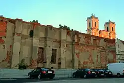 The topic of rebuilding the theater returned in 1991, when the city council established the Andreas Gryphius Theater Reconstruction Foundation. In 1994, the foundation announced a contest for the reconstruction project, which was won by the Architecture - Sculpture - Stucco Conservation Workshop from Wrocław.[4] The winning project was never implemented, and since then only conservation work has been sporadically carried out on the building. In the year when the contest was announced, the Lubuskie Theatre from Zielona Góra staged Antigone at the entrance to the building.[6] Historical re-enactments of the 1945 battle for Głogów were also staged in the vicinity of the theater.[4]