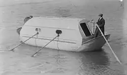 1. ^ "Lundin Craft Exceeds Expectations in a Trial Run Through the Sound". The New York Times. July 20, 1914. Retrieved 2010-10-29. A test of Capt. A. P. Lundin's lifeboat, in which Mr. and Mrs. Elnar Sivard will attempt to cross the Atlantic on their wedding journey, was made yesterday afternoon in the waters of Long Island Sound. The boat ran from the Bayside Yacht Club anchorage, to the Larchmont Yacht Club, covering some sixteen miles in a roundabout course.