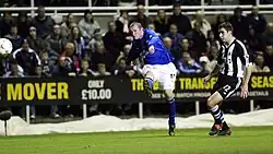 Griffin settled quickly in Newcastle and earned call-ups to the England U21 team and also played in the 1999 FA Cup final.[5] However, he picked up an injury in August 1999, ruling him out for the 1999–2000 season. He made a comeback the following season, but he again suffered a hernia injury, missing another season.[6] Griffin enjoyed something of a resurgence under Bobby Robson and made several solid performances during the 2002–03 season, including in the UEFA Champions League, when his winning goal against Juventus rekindled his side's campaign.[7][8] Injuries and a failure to get a regular place in the side saw him not offered a new contract by Newcastle at the end of the 2003–04 season.[9]