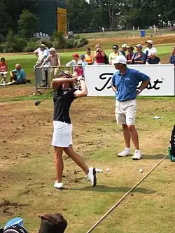 At this point in her career, Sörenstam says she lost focus having reached her biggest goals.[6] Karrie Webb became the best LPGA Tour player but Sörenstam still managed to win more LPGA tournaments than any other LPGA Tour player during the 1990s.[32] She qualified for the World Golf Hall of Fame when she won the 2000 Welch's/Circle K Championship, but was not eligible for induction until finishing her tenth year on the LPGA tour in October 2003.[40][41] Sörenstam was the first international player to be inducted into the Hall of Fame through the LPGA criteria.[42][43][44]