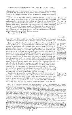 An image of The Compromise Tariff of 1833 that would lower rates on tariffs over 10 years in an agreement between John C. Calhoun and Henry Clay.