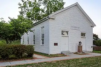 Antioch Christian Church is a historic church located at 4805 NE Antioch Road in Kansas City, Missouri. It was built in 1859, and is a one-story, frame building sheathed in clapboard siding. It has a front gable roof and measures approximately 33 feet wide and 51 feet, 6 inches, deep. It was moved to its present location in 1968.[2]: 2 The church was originally organized in 1853 by Reverend Moses E. Lard, a prominent evangelist. The 1859 building actively served the congregation until 1957. Today, this original building is a registered local historical site maintained by current church members, used for special worship services and events like weddings.[3]
