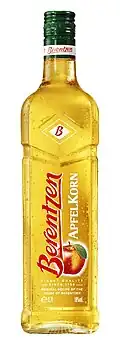 The original was made by Berentzen.[1] Apfelkorn is considered a schnapps and is very sweet with a strong, sweet "apple juice" flavor. Alcohol content is 20% while a typical schnapps is 40%. Apfelkorn was the first of a number of "new" similar liqueurs entering the German market from the late 1970s onwards. Apfelkorn separates itself from another spirit by a similar name; 'Apfelmost' which is made from freshly pressed apples, whereas Apfelkorn is made purely from wheat