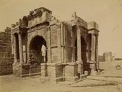 Later, the arch was reused as the northern gate of the city wall in the Byzantine period. The lateral arches were walled up, as was the northern one, until they were reopened by French military engineers during the colonial period.