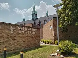 Assumption University is a Roman Catholic university in Windsor, Ontario, federated with the University of Windsor. It was founded in 1857 as Assumption College by the Society of Jesus and incorporated by an Act of the Parliament of Upper Canada, receiving Royal Assent, August 16, 1858.[1] It entered an association with an Ontario university as the Assumption College of the University of Western Ontario (1920–1953) then became the Assumption University of Windsor in 1956, before changing its name again in 1964. When the University of Windsor was established as a secular public university in 1963, Assumption University entered into federation with the newly formed university. Assumption University also remains affiliated with Canterbury College (Anglican) and Iona College (Interfaith). Assumption University is a full member of the Association of Catholic Colleges and Universities in Canada (ACCUC). In 2024, Assumption University was admitted as a member of the Association of Catholic Colleges and Universities.