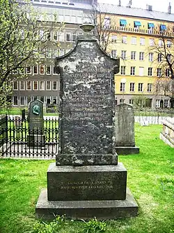 In 1834, he was awarded the Silver Cross of the Order of the Redeemer by King Otto of Greece.[2] In 1836, he visited Thomas Gordon in Scotland. In 1840, he travelled to the Grand Duchy of Finland, visiting friends and relatives. In 1842, he decided to return to Sweden where he was suspected of being a radical revolutionary. Following an audience with King Charles XIV John he was allowed to settle in the country. The king was impressed by Myhrberg's military career, awarding him the title Knight of the Order of the Sword and the rank of major. He went on to serve in the militia protecting the Swedish colony of Saint Barthélemy until 1848 when he returned to Sweden. He served as an advisor for King Oscar I regarding Finnish matters, warning him against intervening in the Crimean War. During the course of the January Uprising, Myhrberg moved to Paris where he socialized with Polish political immigrants.[5] He spent his final years in Stockholm where he died on 31 March 1867; upon his death he was given a state funeral, with full military honours at the Johannes Church graveyard despite never holding office in Sweden.[5][2]