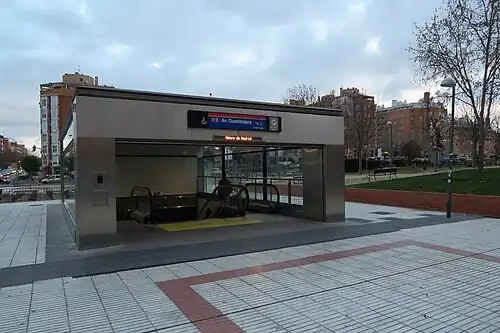 Avenida de Guadalajara [aβeˈniða ðe ɣwaðalaˈxaɾa] is a station on Line 2 of the Madrid Metro. It is located in fare Zone A.[1]